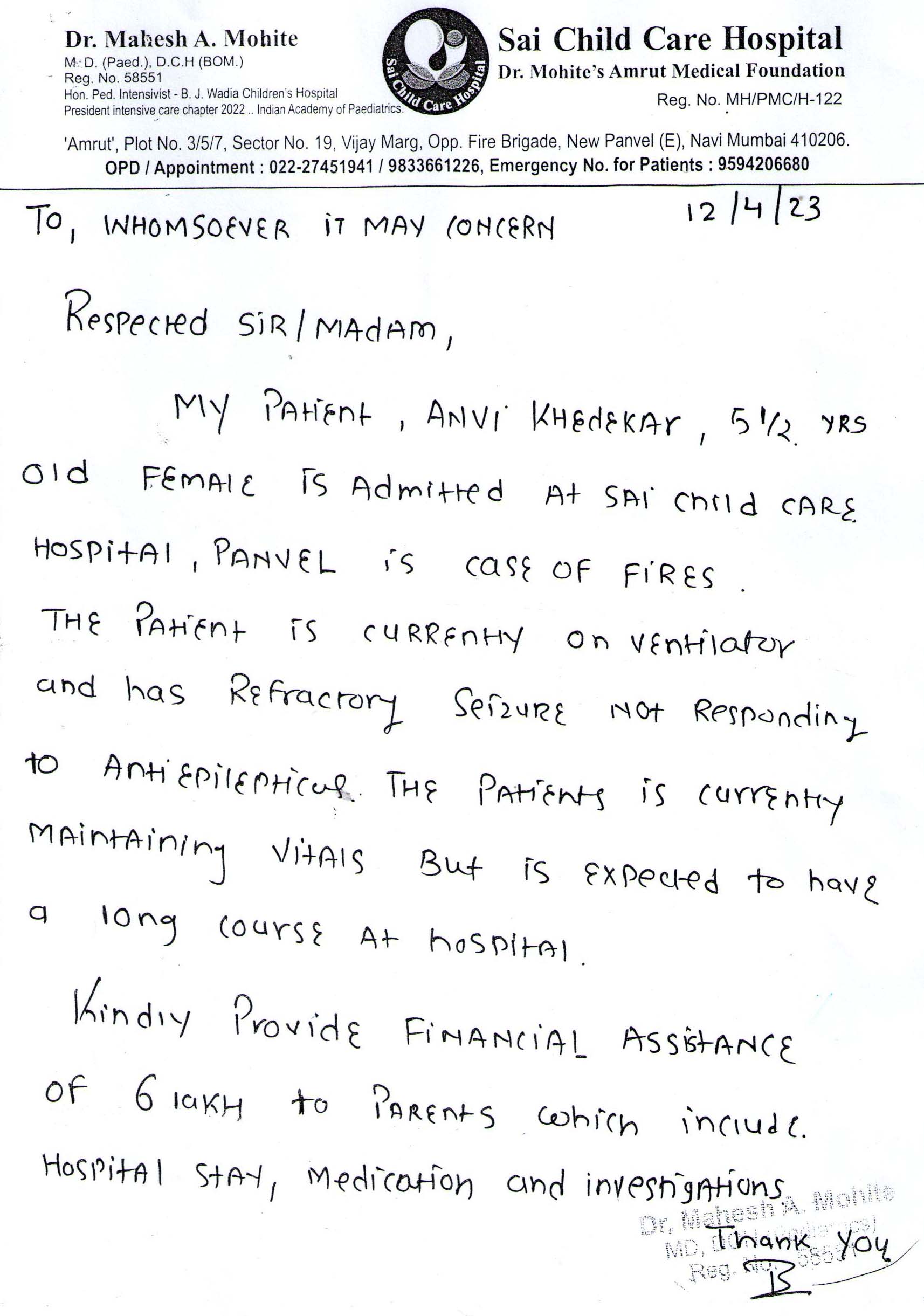 Hospital  :  Sai Child Care Hospital, Mumbai, Maharashtra