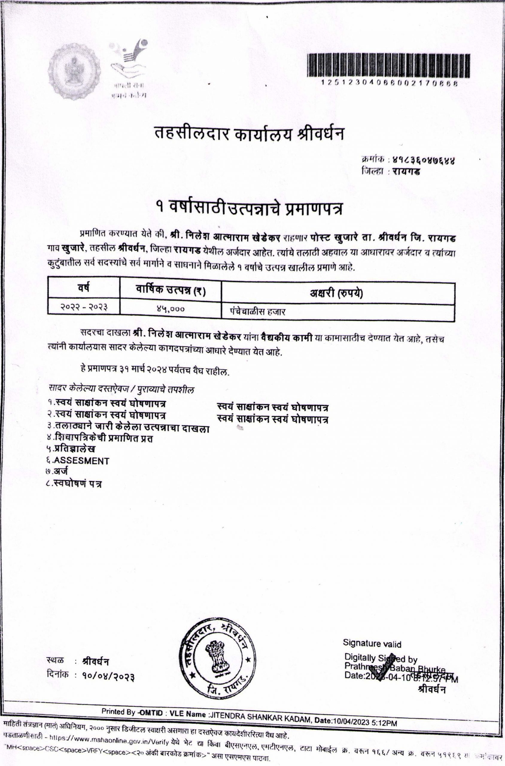 Home Address: Raigadh, Maharashtra