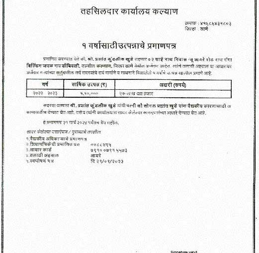 B0 sonal income proof