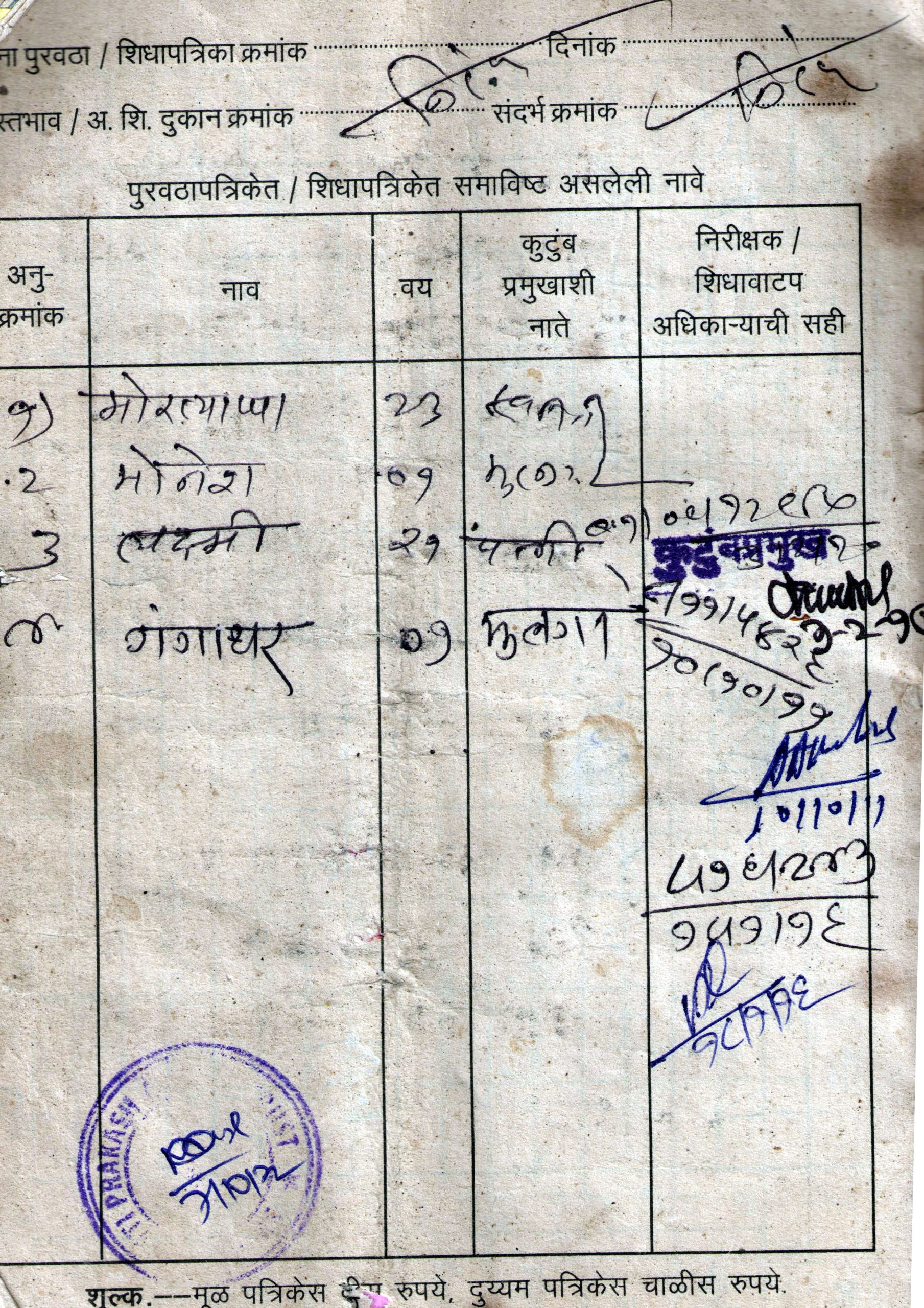 3. GANGADHAR RATION CARD BACK