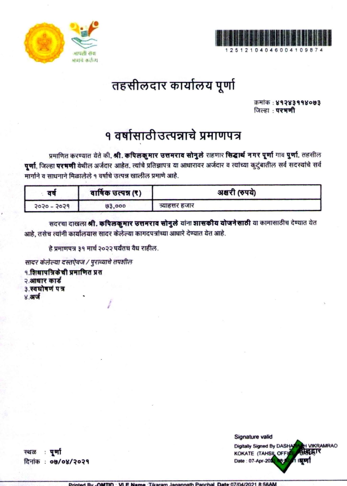 Home Address: Parbhani, Maharashtra