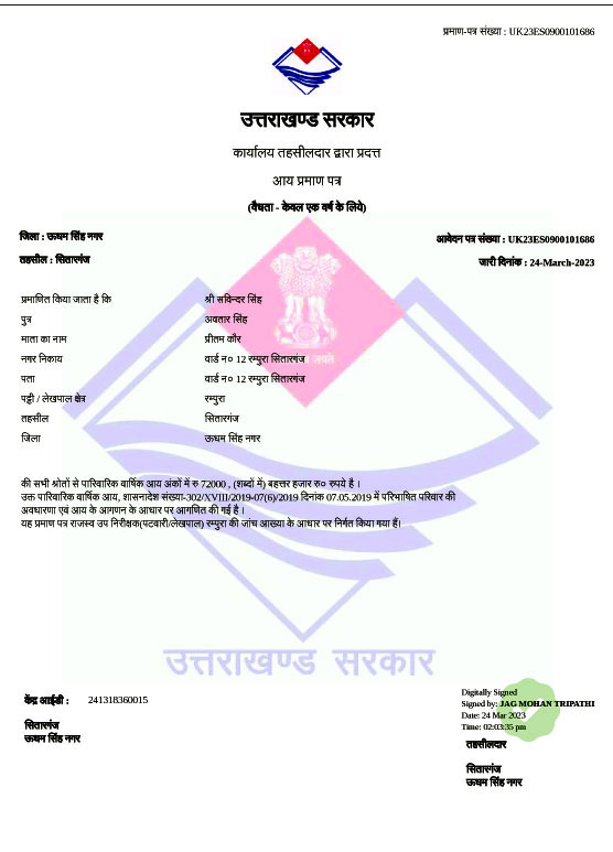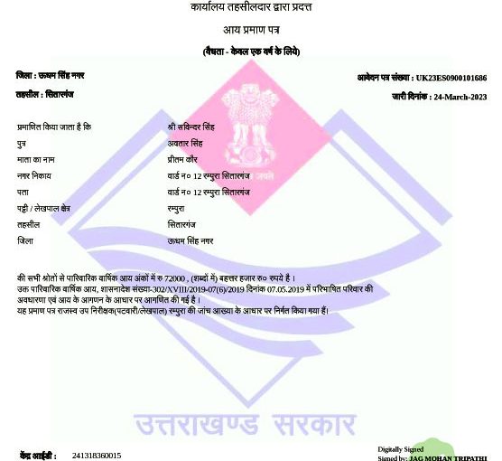 singh income certificate