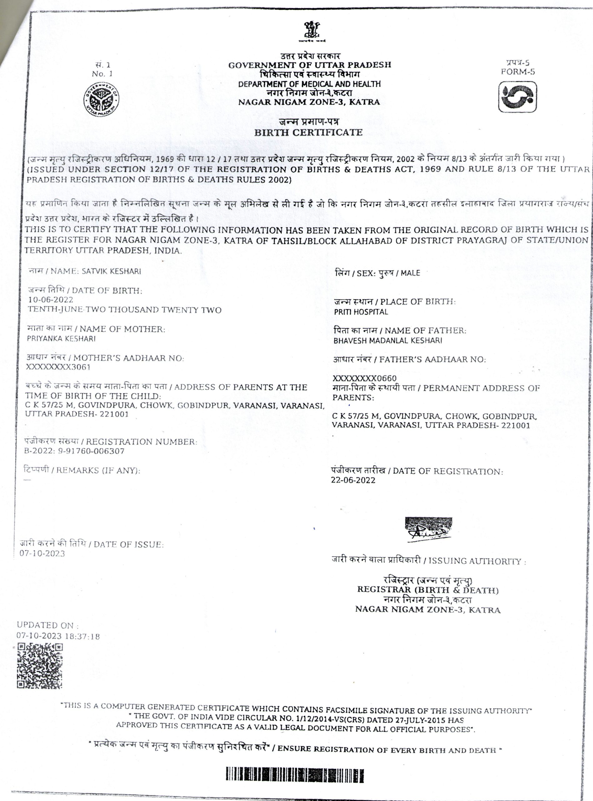 birth certificate